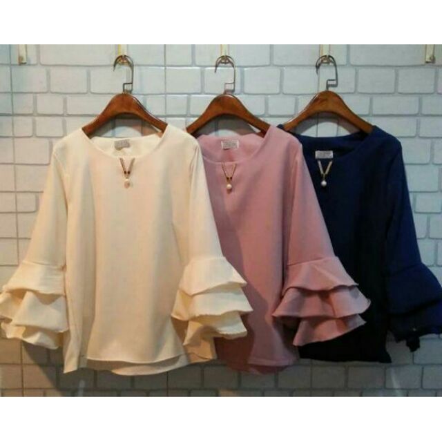 Jual Baju Atasan Wanita Blouse Kriwil Lengan Terompet Top Blouse Wanita New Arrival Di Lapak Mercundi 3 Bukalapak