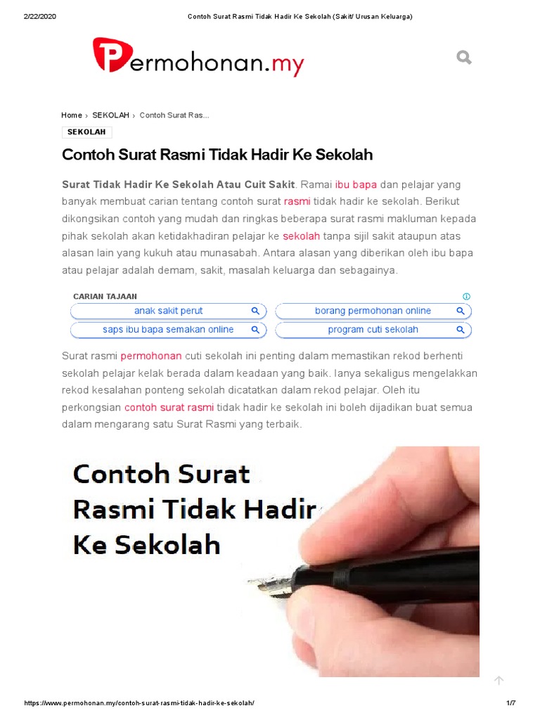 Download Contoh Surat Tidak Hadir Ke Sekolah 2020 Portal Malaysia